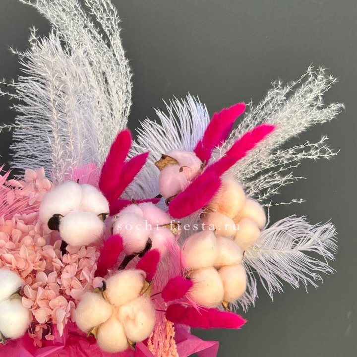 В сезон (весна и лето) ассортимент шире: пионы, ранункулюсы, тюльпаны местные и голландские, ромашки, гортензия. Круглый год — розы от 50 см стебель, кустовые хризантемы, альстромерия, гипсофила, эустома, гвоздики, эвкалипт для миксов.