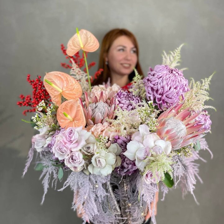 Авторские букеты гиганты в Сыктывкаре — формат для тех событий в жизни города, когда обычного букета недостаточно. Юбилей 50 лет, свадьба, открытие бизнеса, значимое корпоративное поздравление — именно к таким поводам клиент заказывает гигантский авторский букет, который невозможно не заметить. Флорист в Сыктывкаре создаёт авторские букеты гиганты из 101 и более роз, пионовые гиганты в сезоне, корзины-гиганты для торжественных вручений. Именно масштаб флористического жеста делает момент незабываемым для получателя и всех присутствующих.