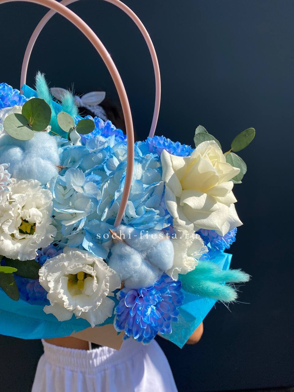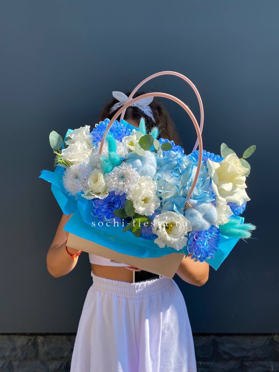 гортензия, озотамнус (или аналог сезона), мисти бабблс, диантус, авторское оформление.