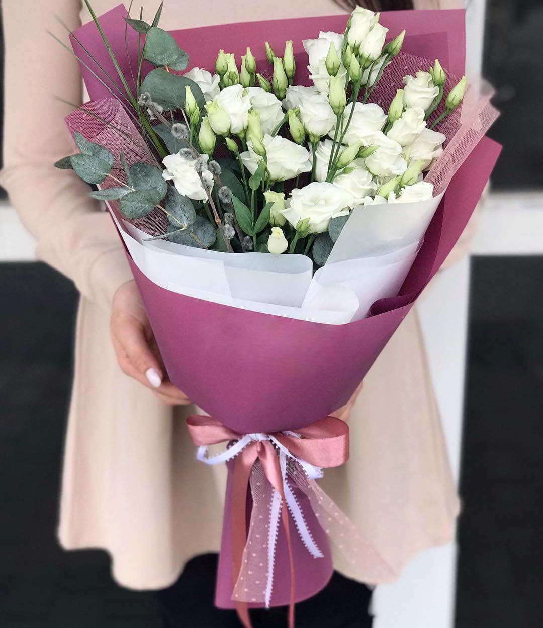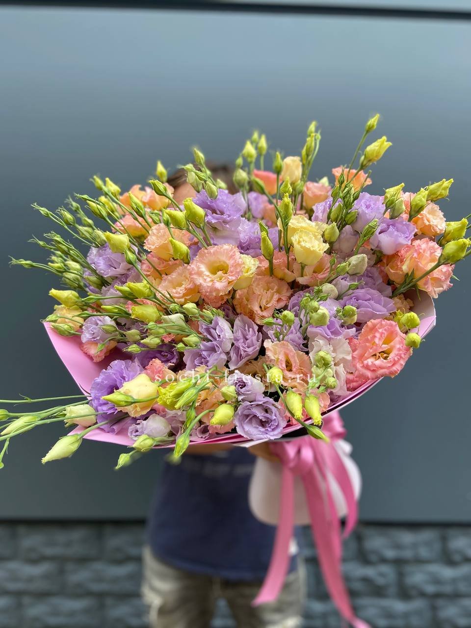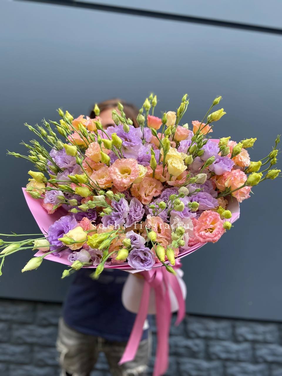 эустома - 21 шт., лента, дизайнерская упаковка.