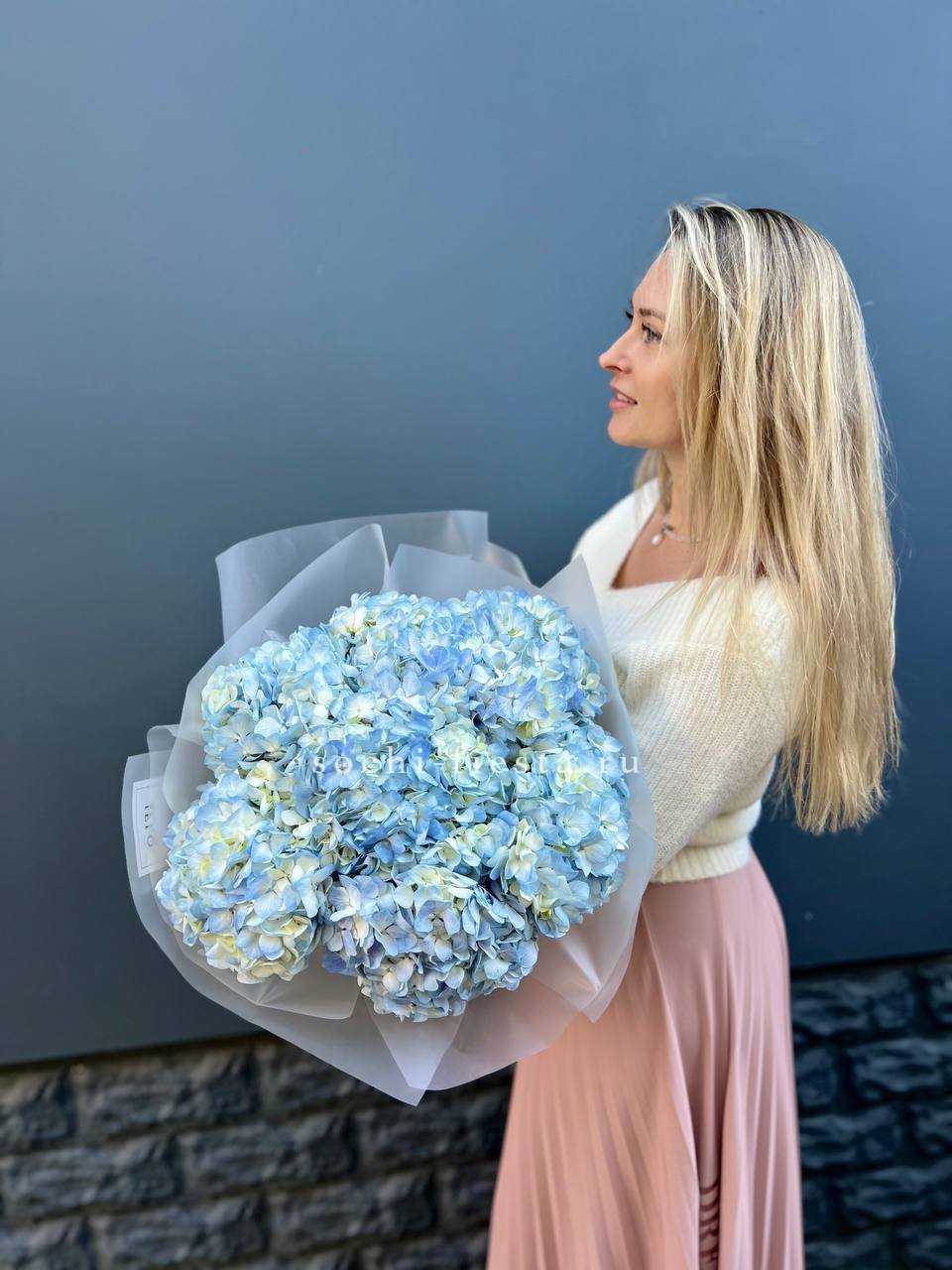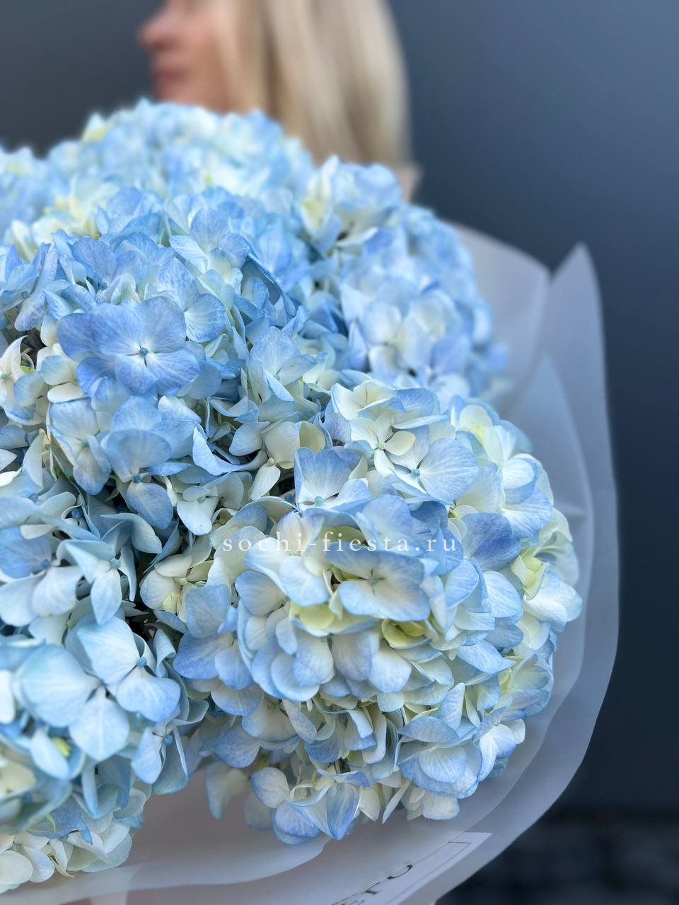 гортензия - 3 шт., лента, дизайнерская упаковка.