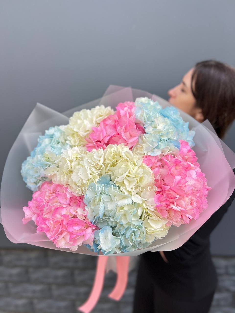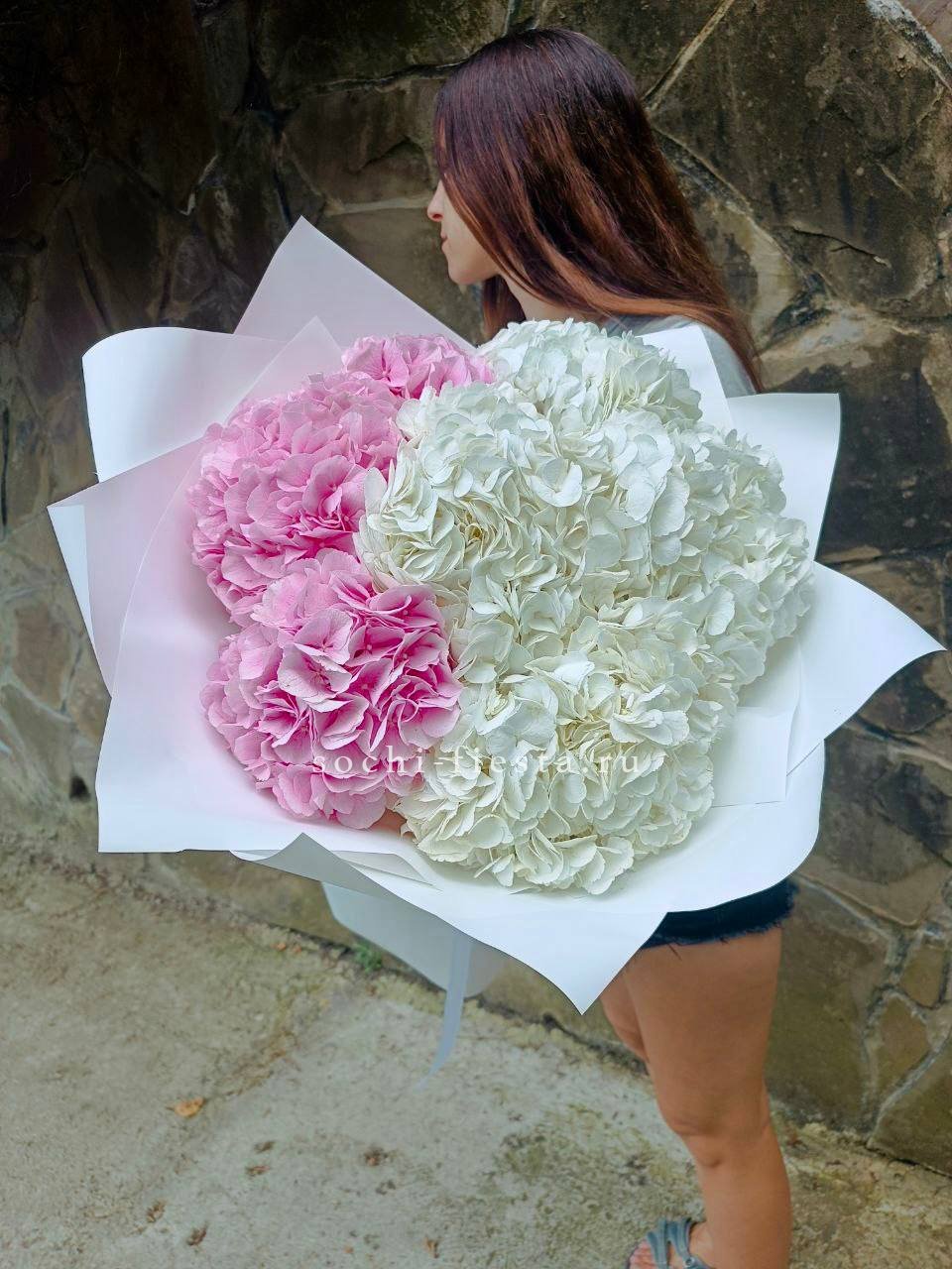 гортензия 15 шт., лента, дизайнерская упаковка.
