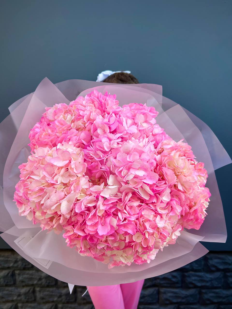 гортензия, лента, дизайнерская упаковка. Цвет гортензии на выбор