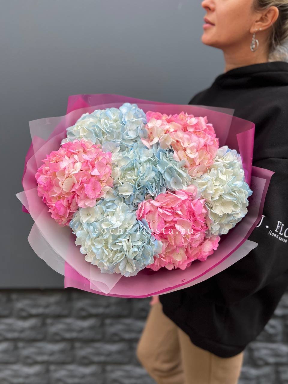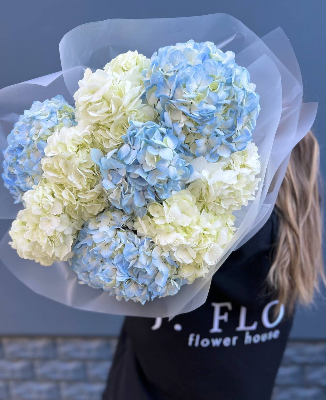 на выбор количество гортензии, ленту На фото - 19 шт.