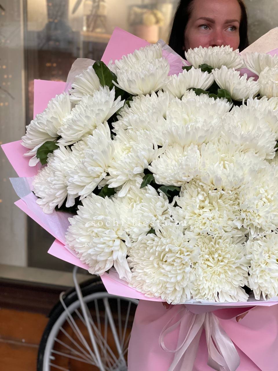 хризантема кустовая - 25шт.,  лента.