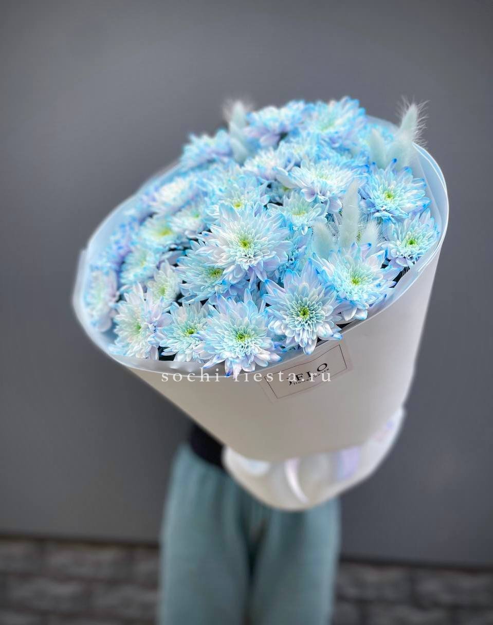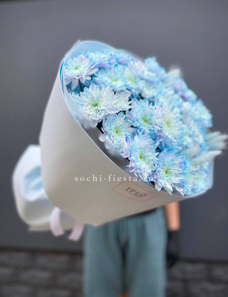 хризантемы - 7 шт, эвкалипт,  лента, дизайнерская упаковка.
