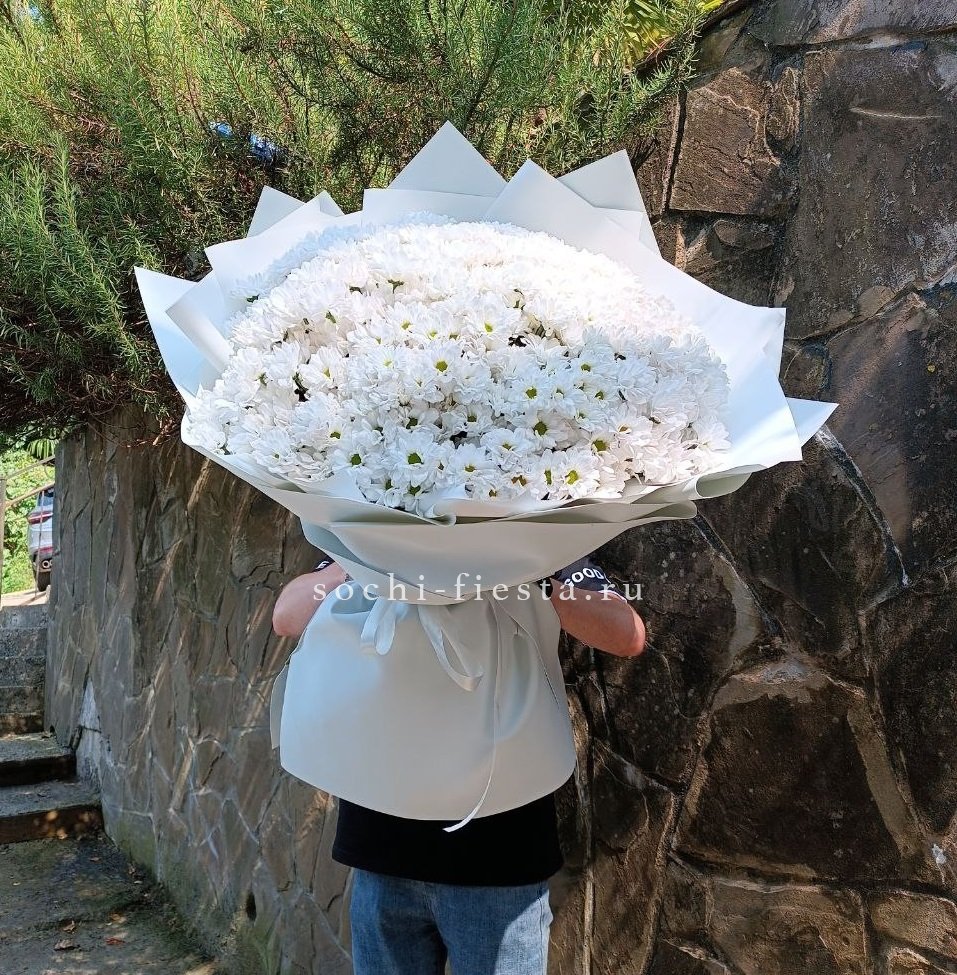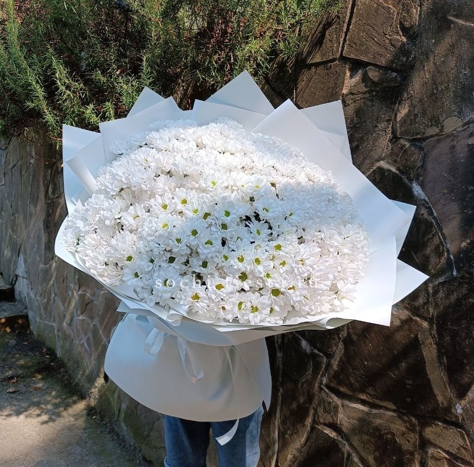 Крупные соцветия одноголовых хризантем раскрываются во всей полноте. Плотные лепестки образуют графичные круги, а сдержанная упаковка сохраняет чистоту формы.