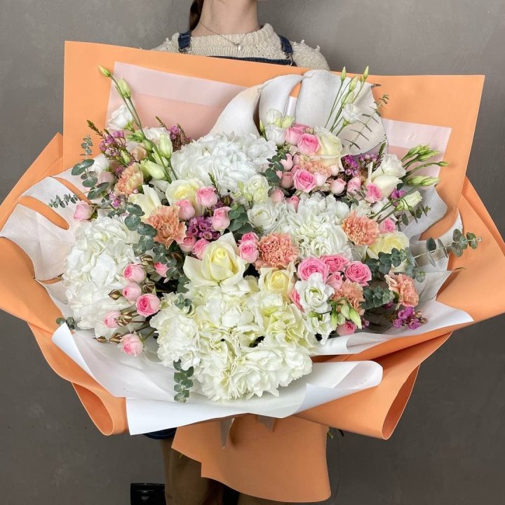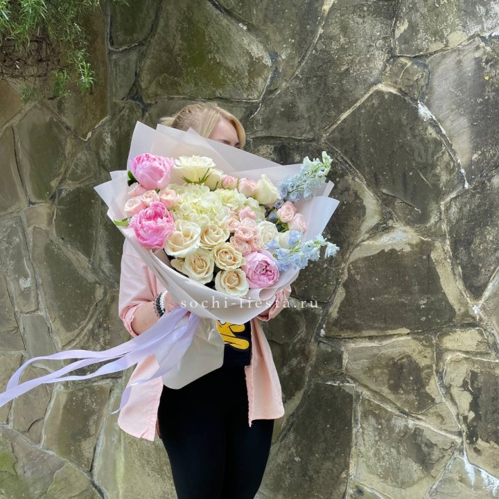 - Редкий состав — David Austin, ранункулюс, анемоны, сезонные пионы.