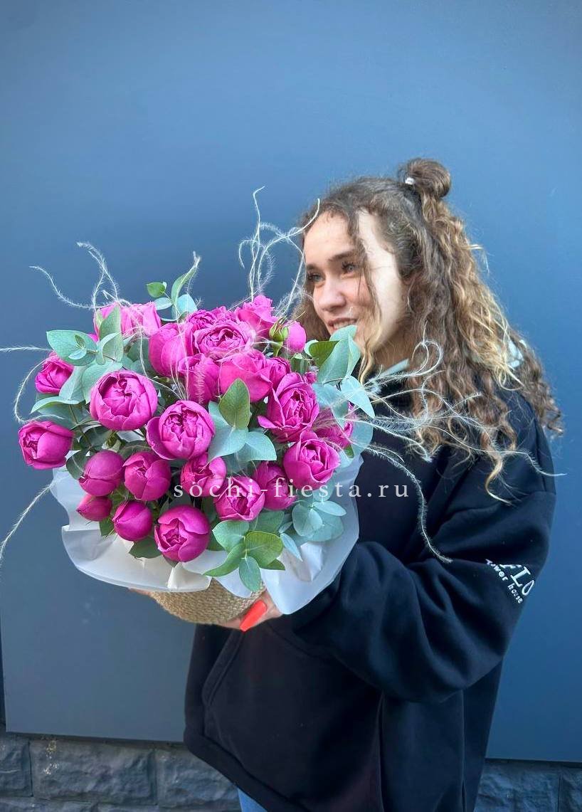Для заказа товара "Пионовидные розы в джутовом кашпо " с доставкой в Сыктывкаре нажмите в корзину