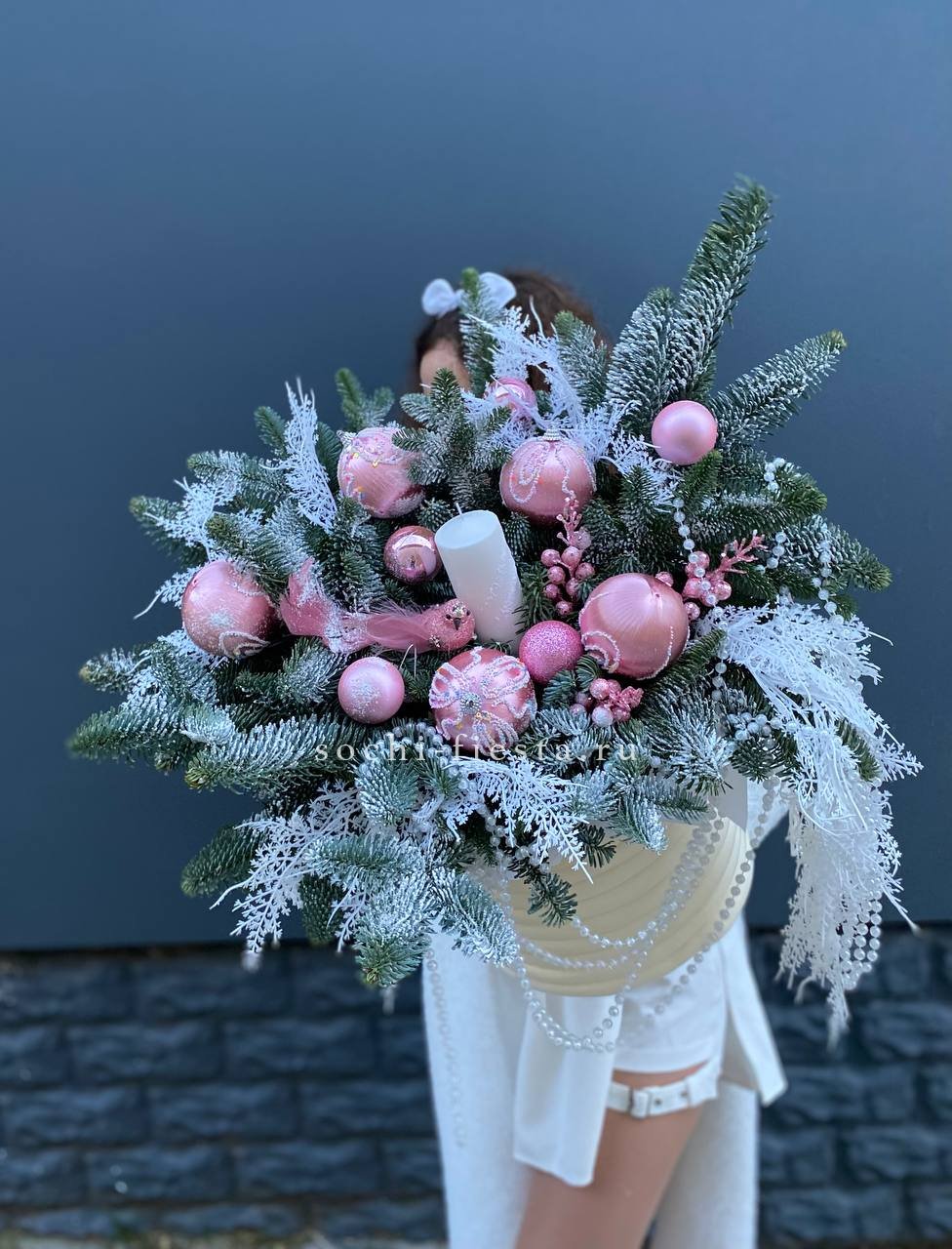 нобилис, цилиндр, оазис, свечи, новогодние игрушки, декор ВНИМАНИЕ! Готовая композиция (декор) может иметь незначительные внешние отличия от примера на фотографии.