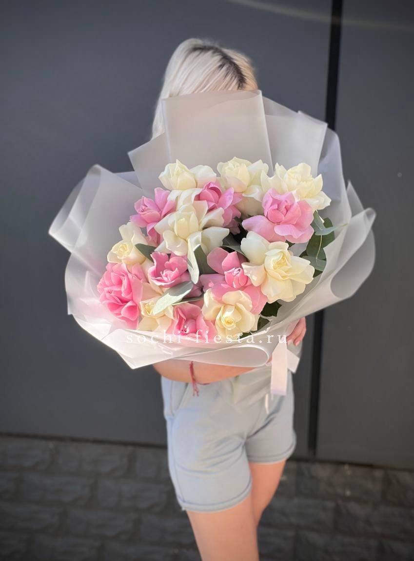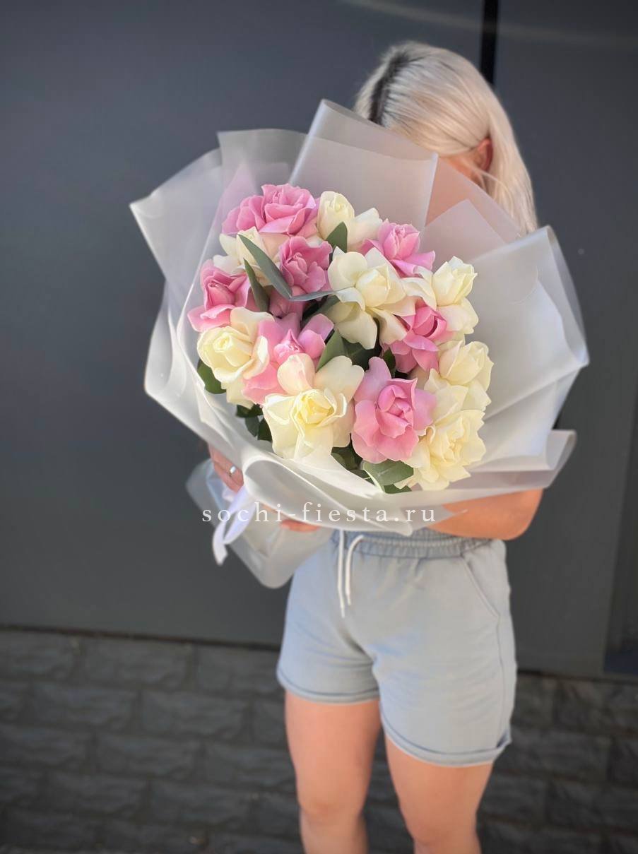 Для заказа товара "15 бело-розовых роз" с доставкой в Сыктывкаре нажмите в корзину