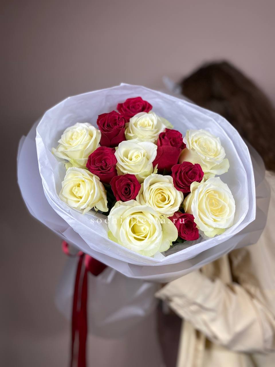 15 роз, лента, дизайнерская упаковка.
