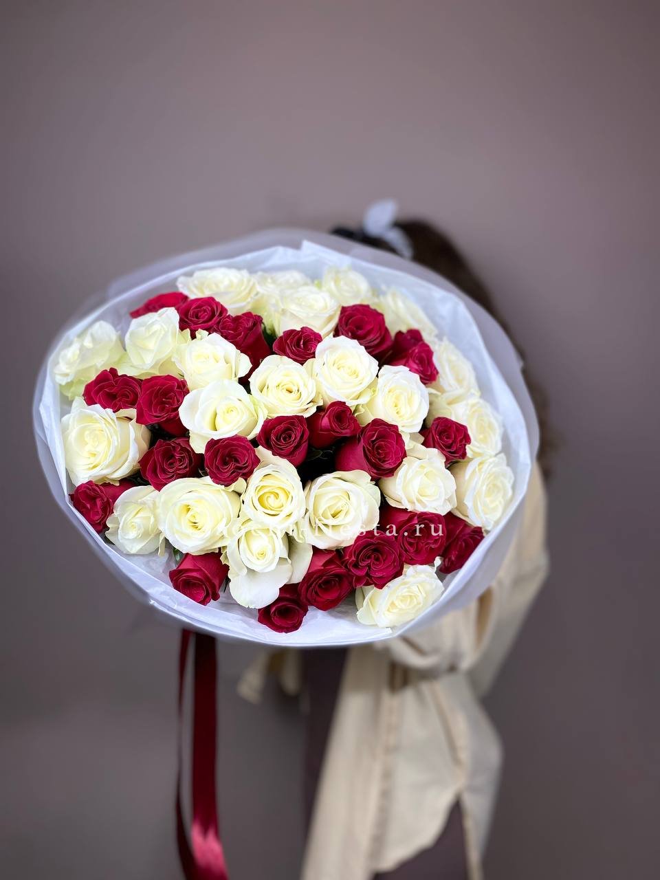 Для заказа товара "Букет из красных белых 45 роз" с доставкой в Сыктывкаре нажмите в корзину