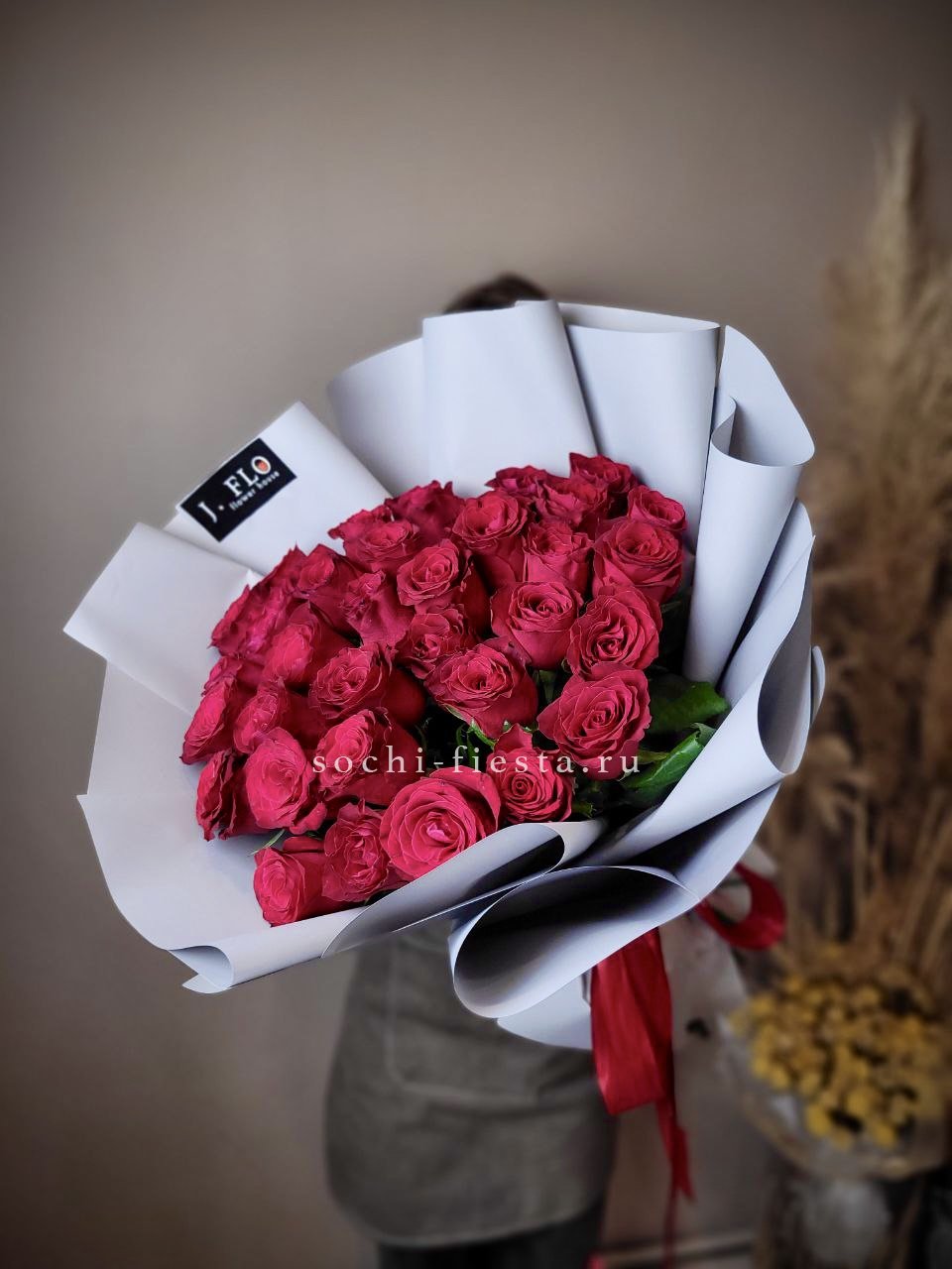 33 красных роз, лента, дизайнерская упаковка Вы можете выбрать желаемое количество цветов данном в букете.
