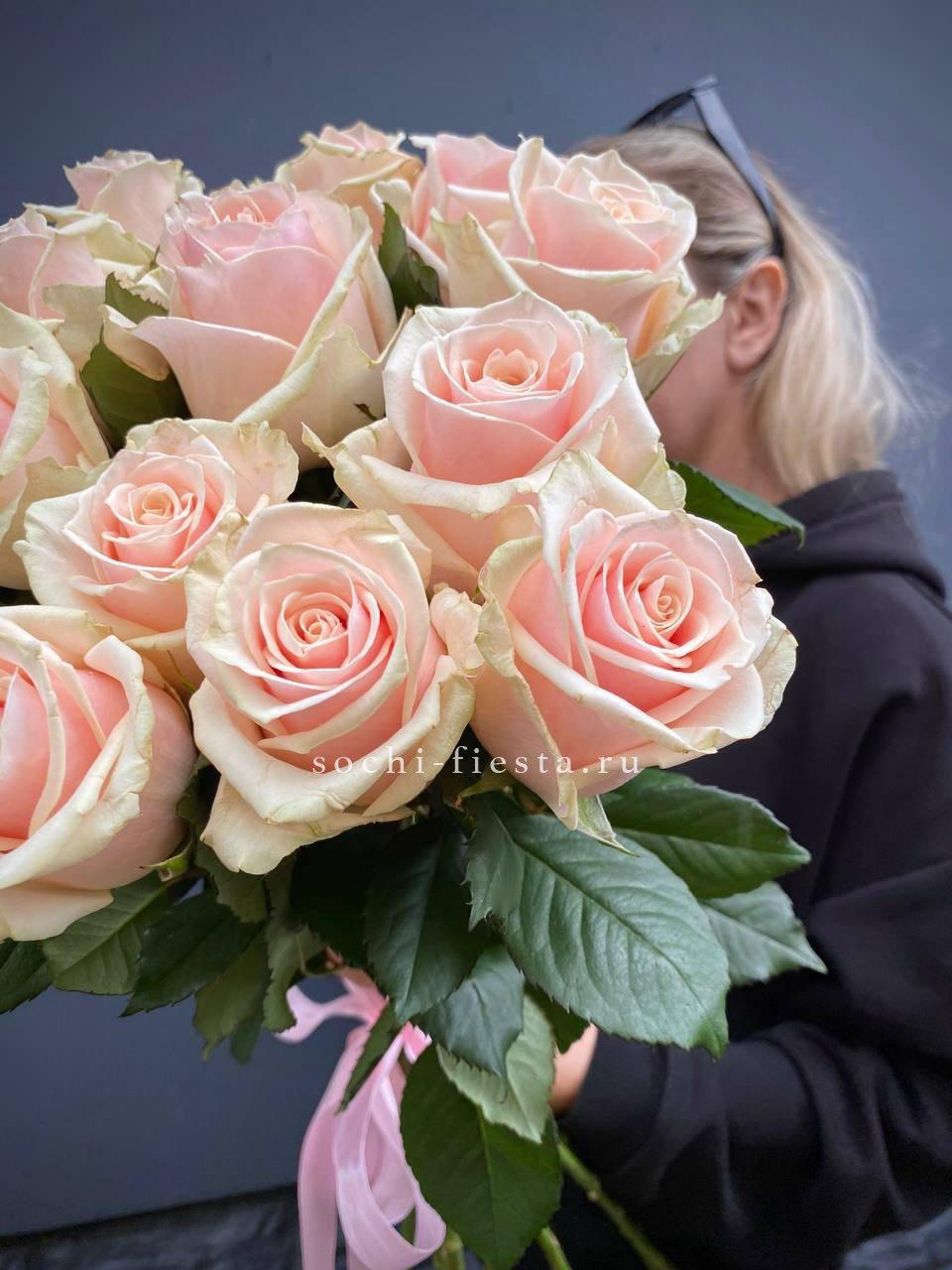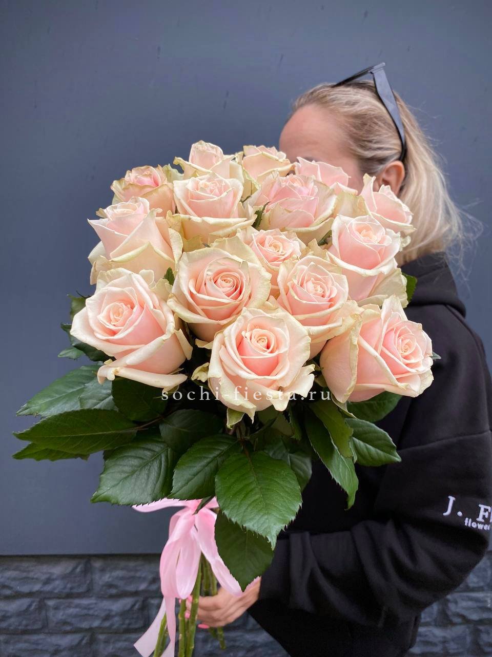 Двадцать пять бутонов кремового оттенка собраны в классический монобукет. Мягкая палитра и округлая форма создают спокойное впечатление без лишней декоративности.
