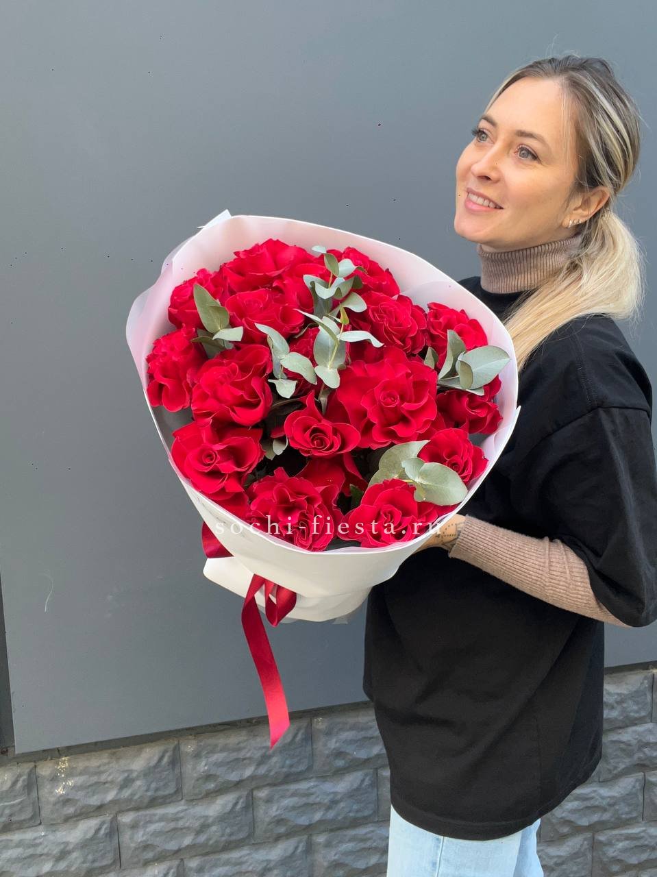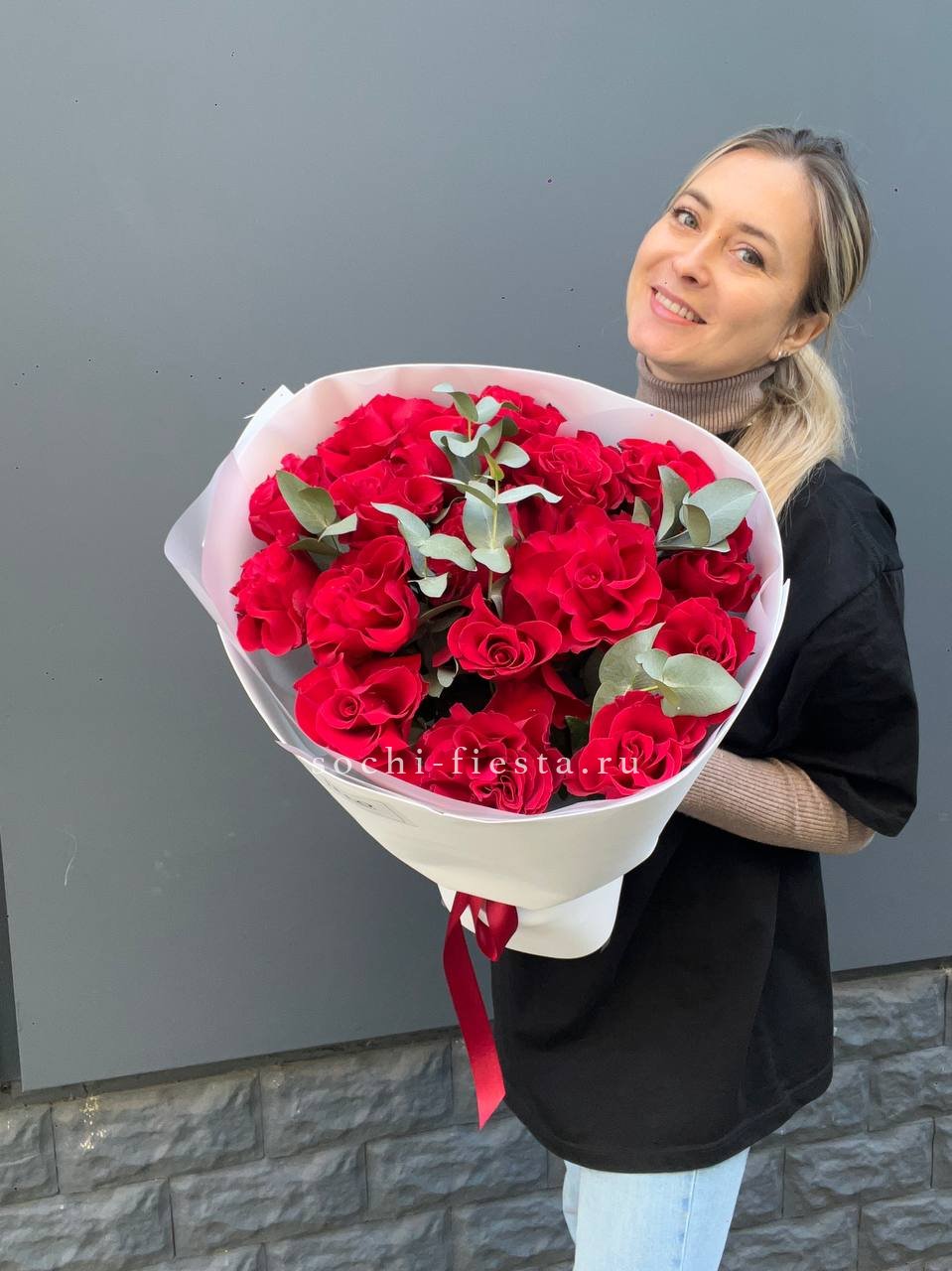 вывернутые розы - 7 шт., эвкалипт - 2шт., лента, авторская упаковка.