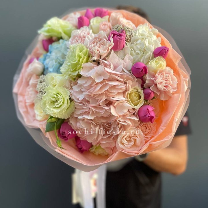 Сезонные хиты в Сыктывкаре складываются из классической голландской и эквадорской срезки круглый год плюс сезонные акценты. Пионы в мае-июне, гортензия летом, хризантемы осенью, амариллис зимой. Местные тёплые теплицы добавляют свежие позиции в межсезонье.